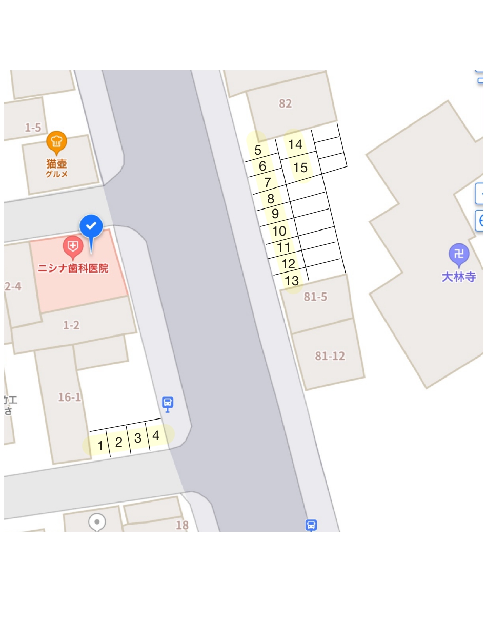 •医院側 角、現在工事中の隣(4台) 図の1-4